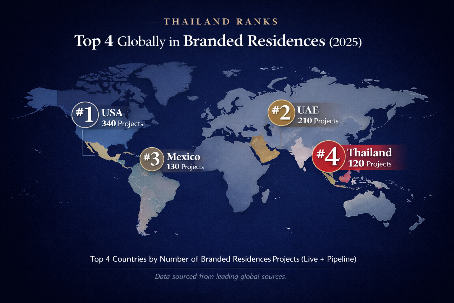Thailand now sits alongside the United States, the United Arab Emirates (UAE), and Mexico–markets long recognized as global leaders in branded real estate.