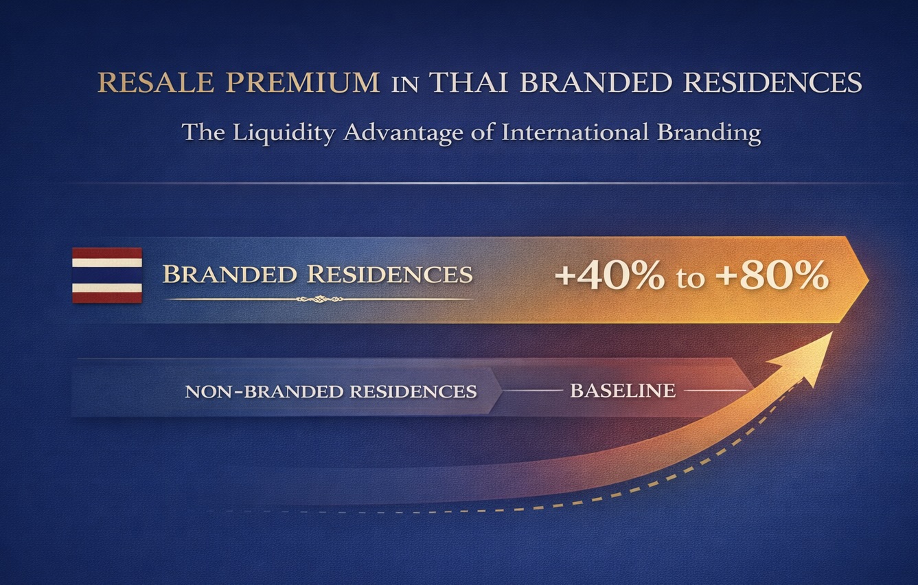 Global research and market benchmarks indicate that branded residences in Thailand can achieve resale premiums of approximately 40–80% compared to non-branded projects in comparable locations.