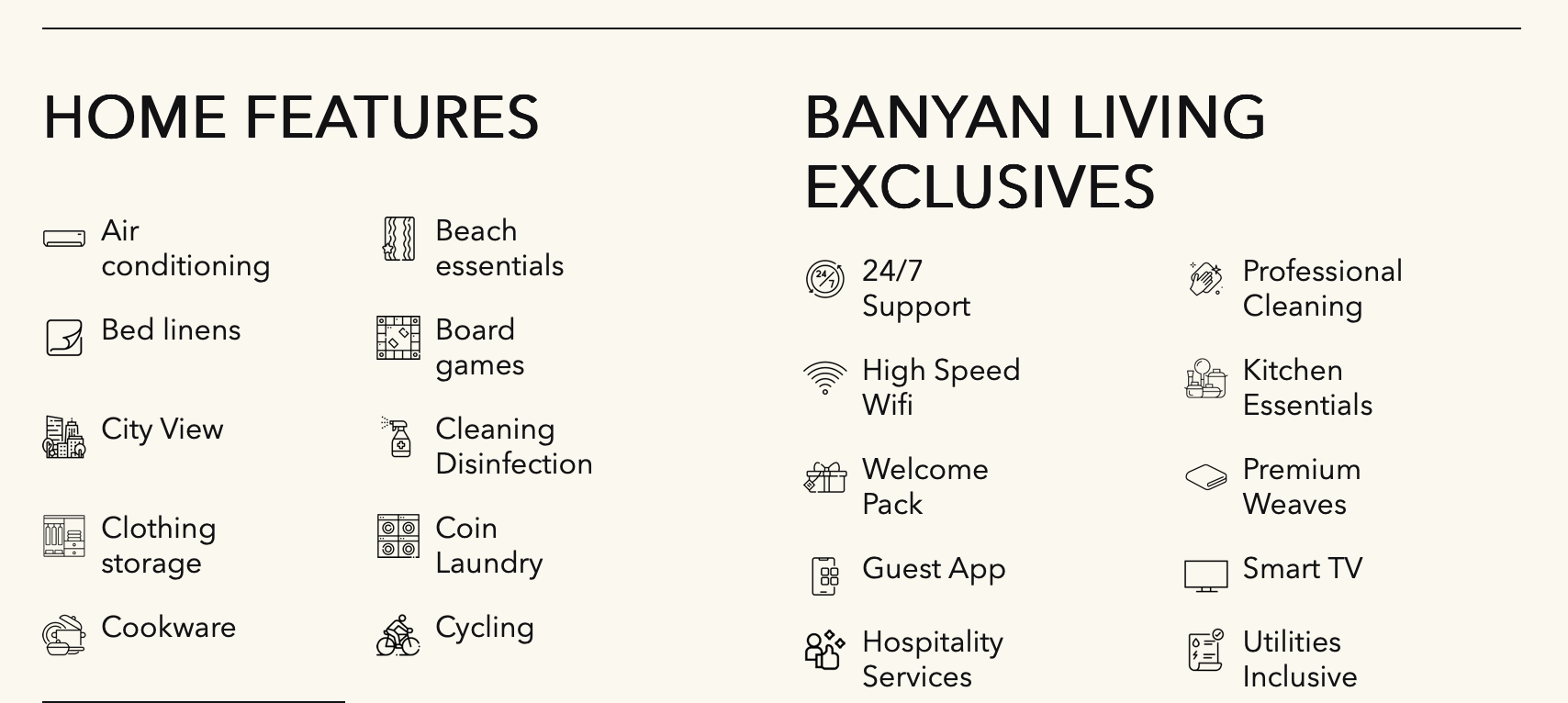 • Standards: Management and maintenance quality adheres to the high standards of Banyan Living. (Unit allocation is based on availability at the time of booking.)